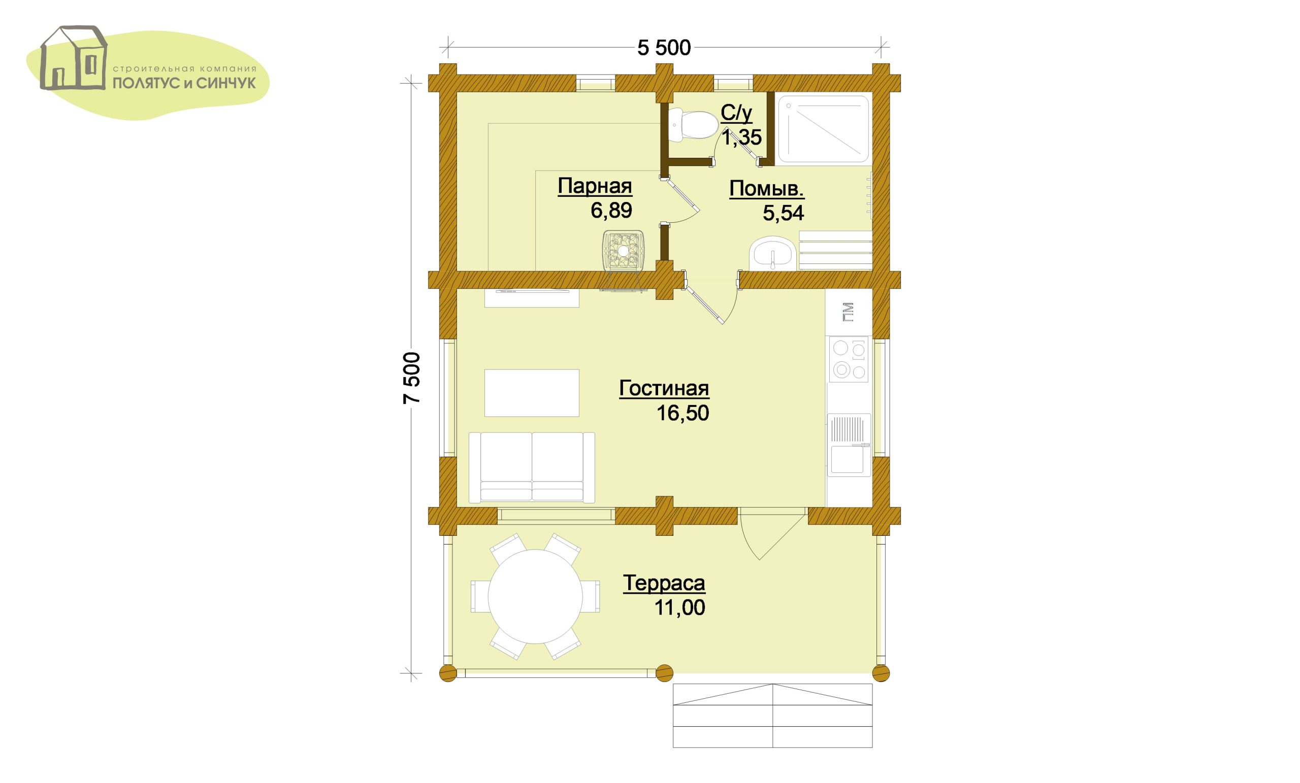 — Планировка для бани: отдельные зоны парной, помывочной и гостиной/отдыха