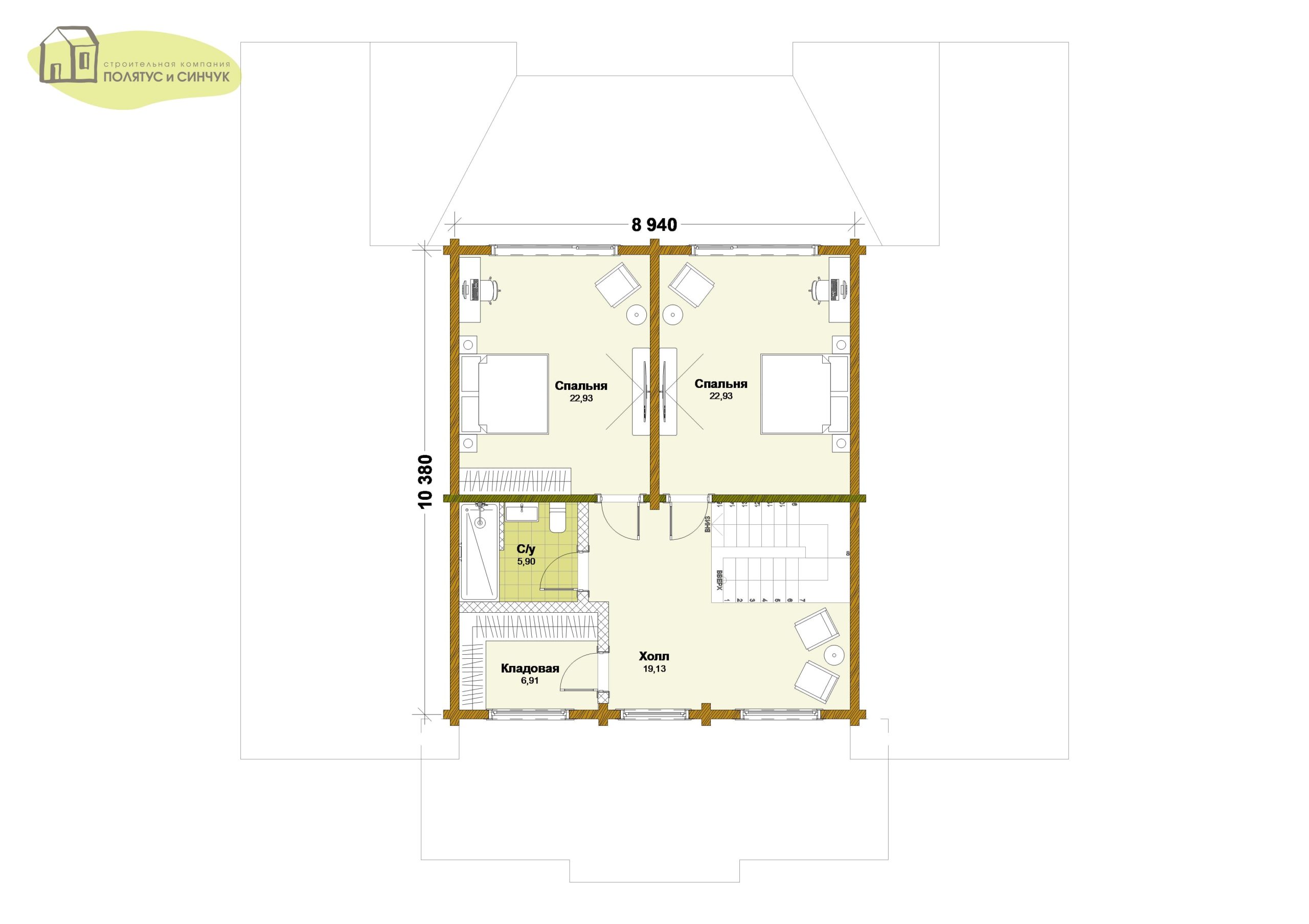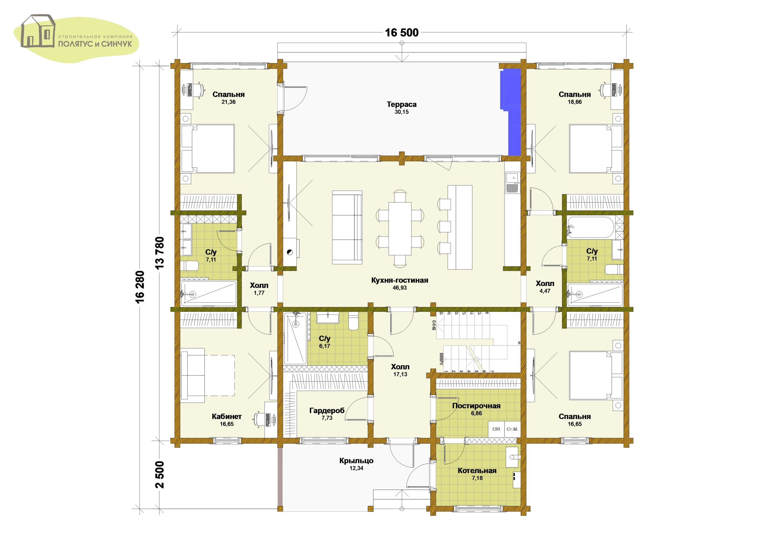 • Стеновой комплект из клееного бруса для постоянного проживания, по проекту, сечение 185(h)*200 мм;
