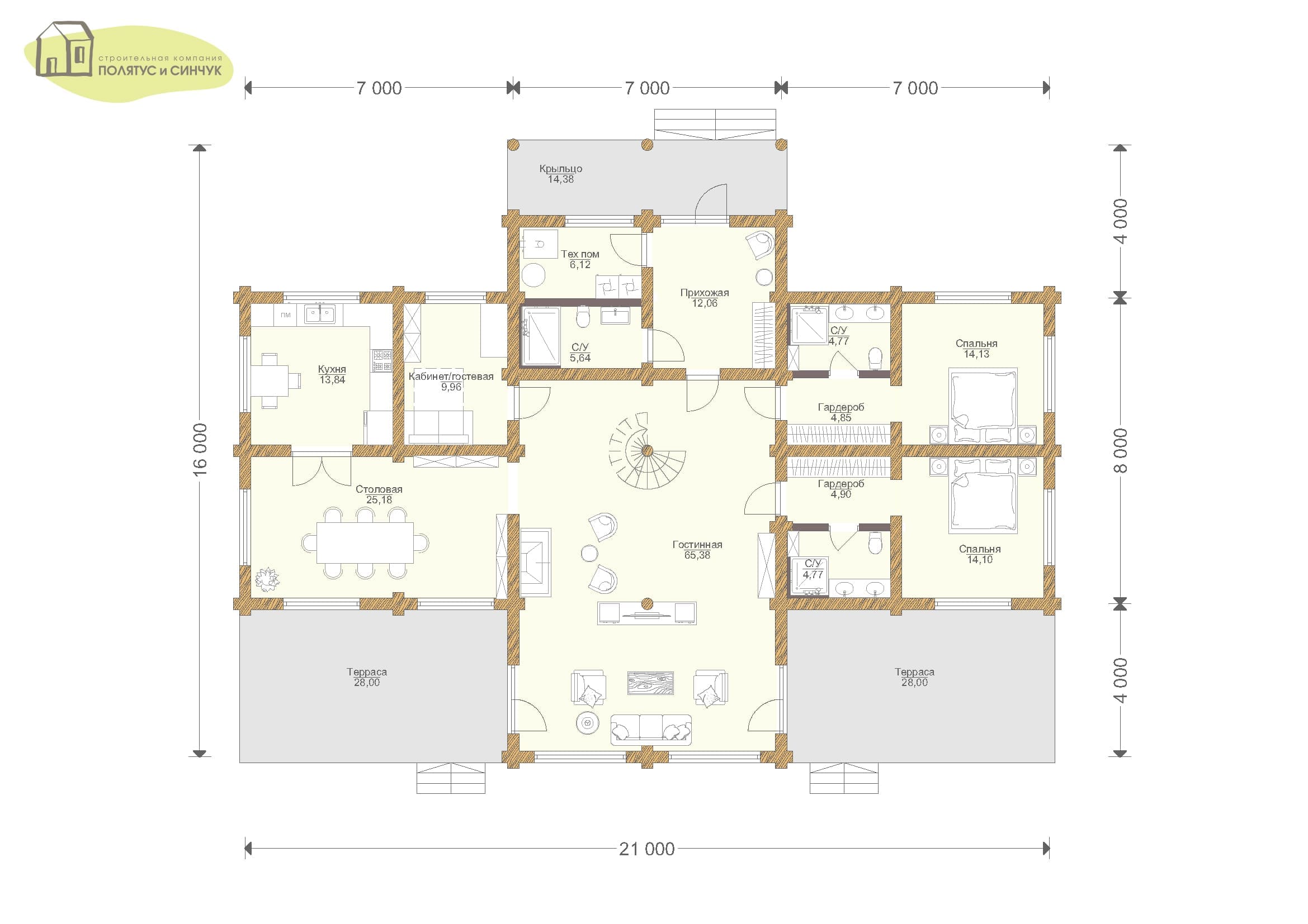 — Крыльцо, прихожая и техническое помещение у входа обеспечивают удобную хозяйственную зону