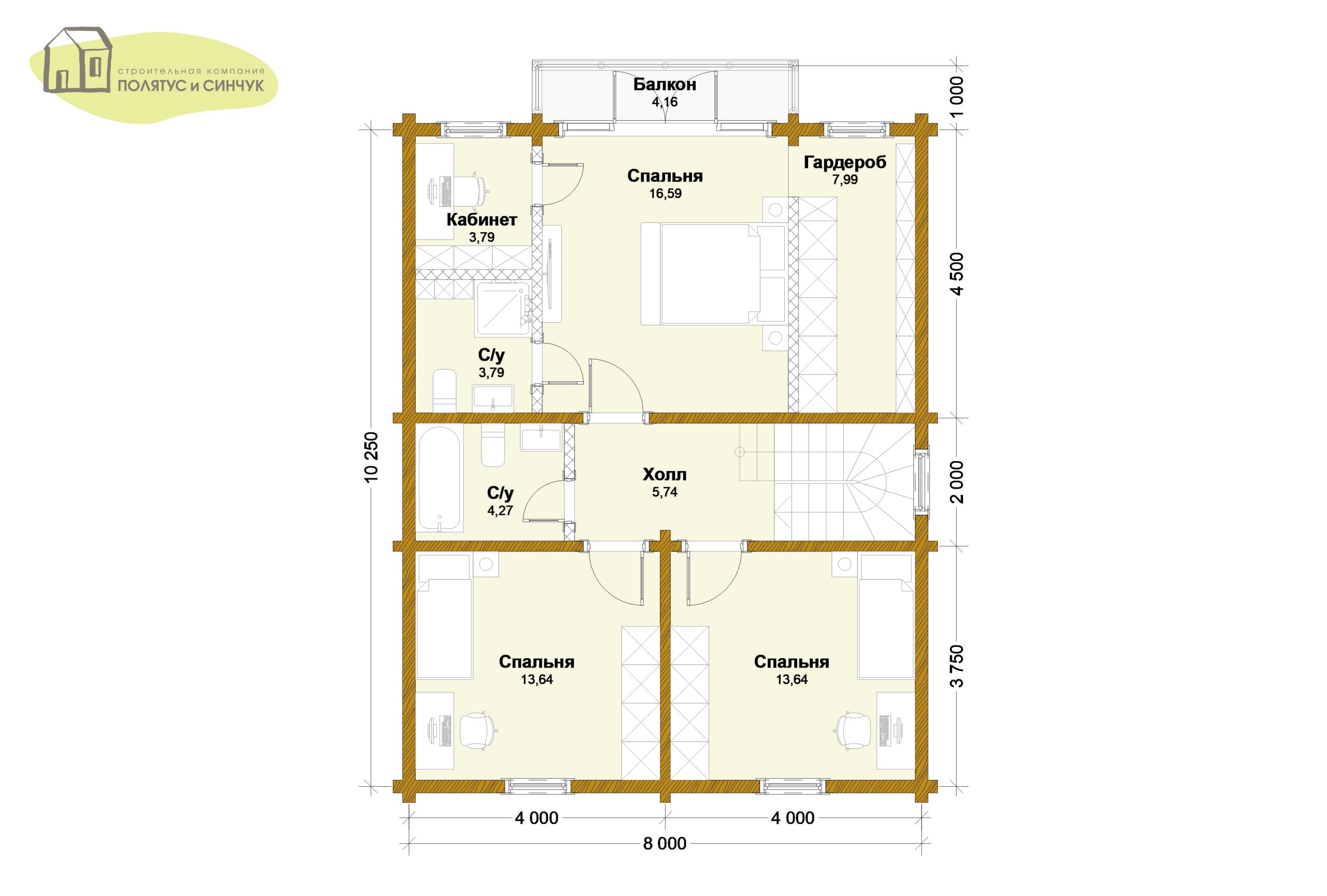 - Стеновой комплект из клееного бруса для постоянного проживания, по проекту, сечение 185(h)*200 мм;