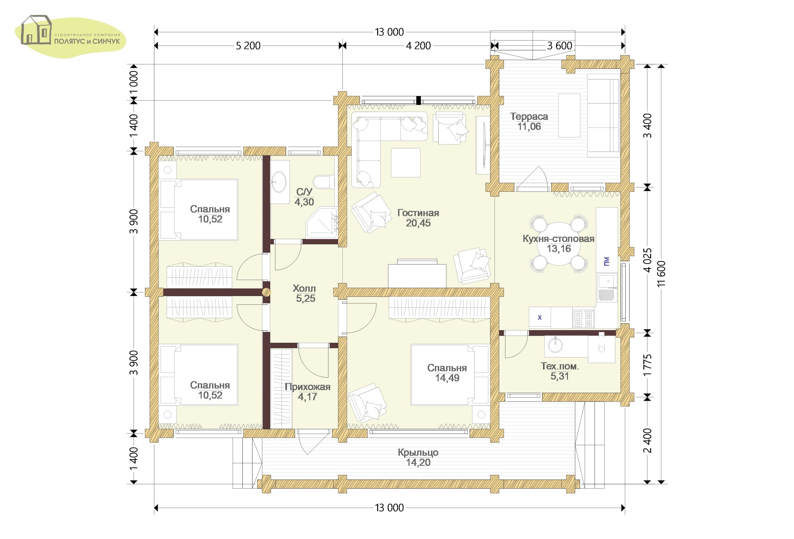 — Кухня-столовая смежна с техническим помещением и террасой — удобна для обслуживания и летнего использования