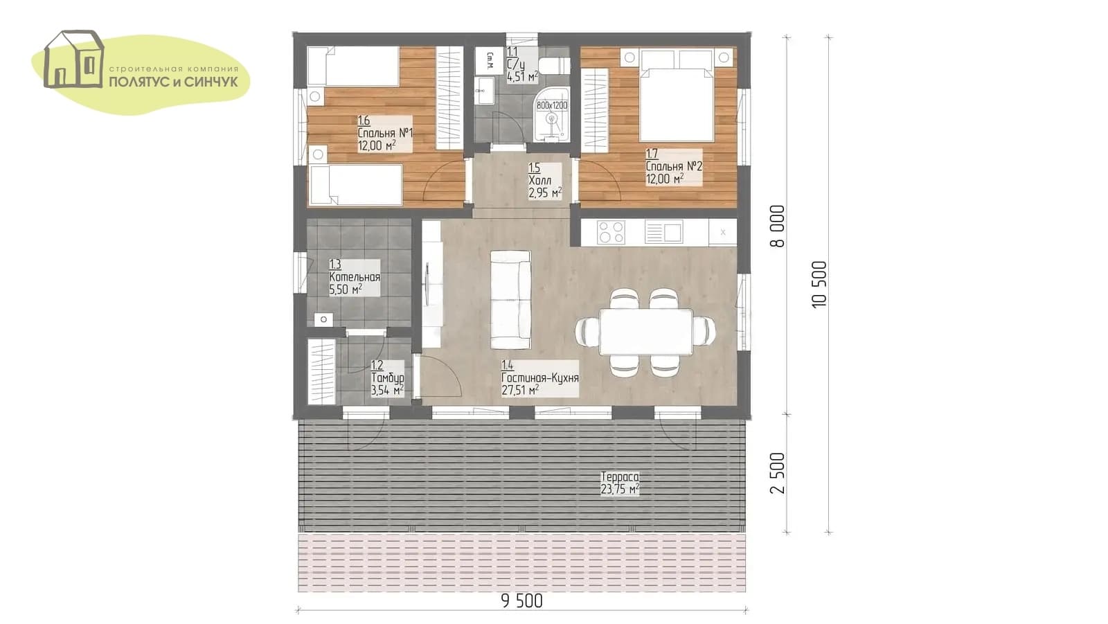 Размер дома 9.5 х 10.5 м