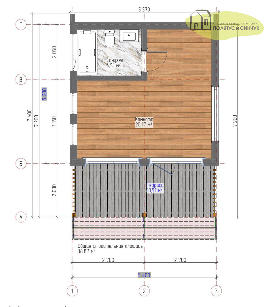 — Наличие чёткой планировочной структуры: терраса — жилая комната — санузел