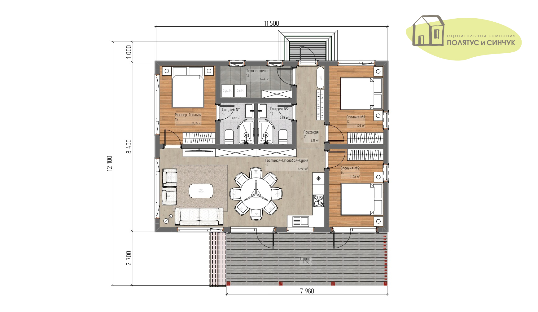 — Техпомещение/прачечная выделены отдельно — удобство для эксплуатации и хранения.