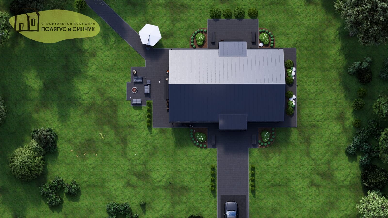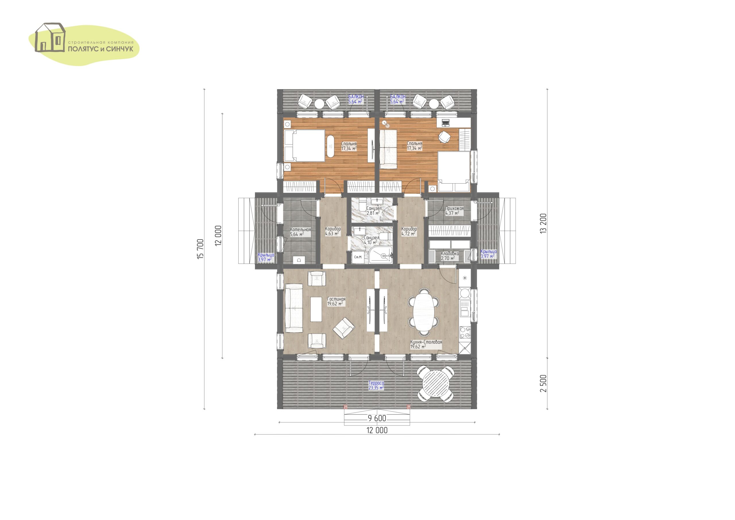 — Чёткое зонирование: общественная зона (кухня-столовая, гостиная) отделена от приватной зоны со спальнями