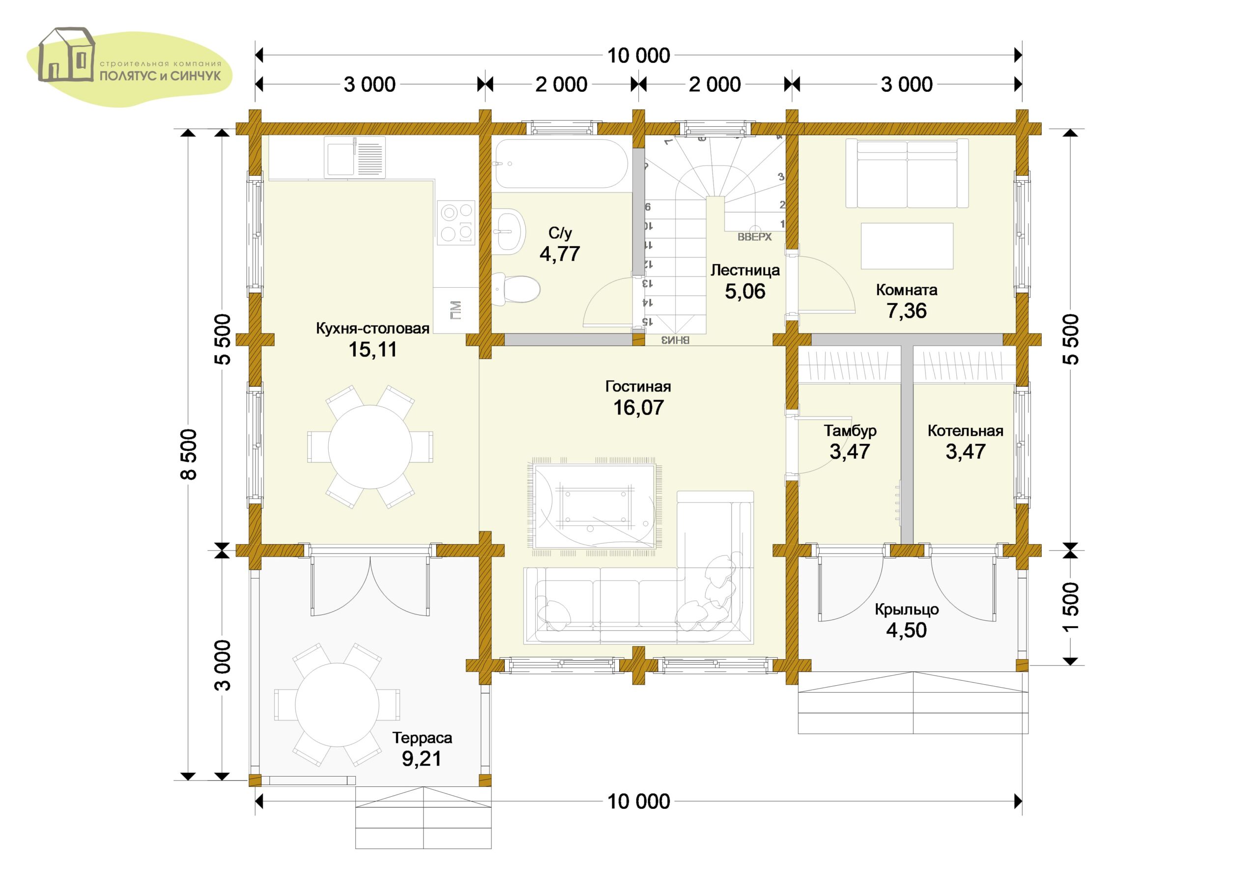 — Терраса (9,21) и крупные окна в жилых помещениях обеспечивают хорошее естественное освещение.