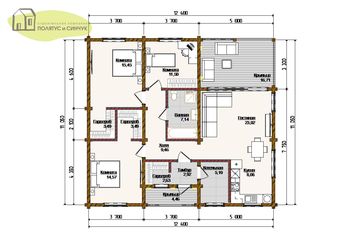 — Просторная гостиная 23.02 м² с выходом/доступом на крыльцо (террасу)